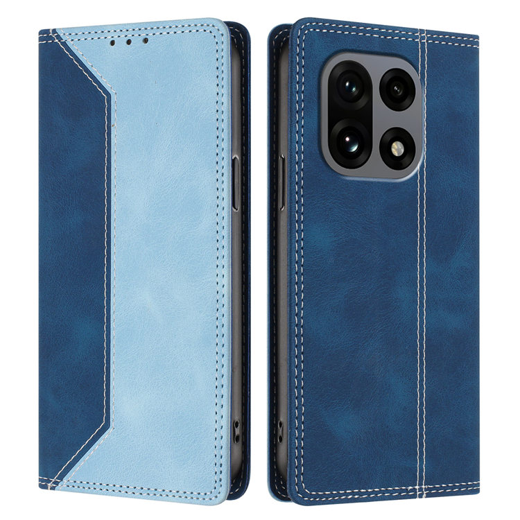 OnePlus 15 5G Plånboksfodral Färg Splicing RFID Blocking Skin Touch Läder - Mörkblå/Blå