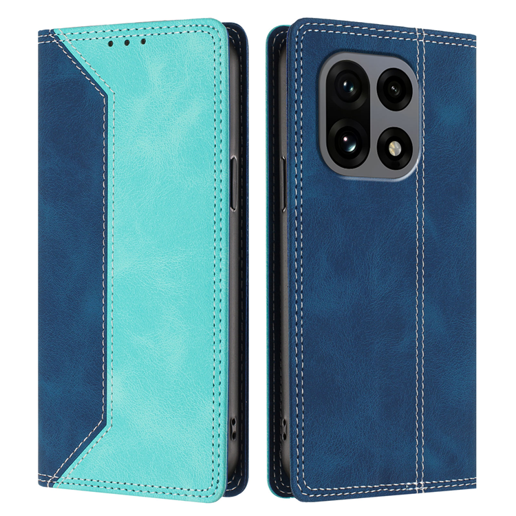 OnePlus 15 5G Plånboksfodral Färg Splicing RFID Blocking Skin Touch Läder - Mörkblå/Grön