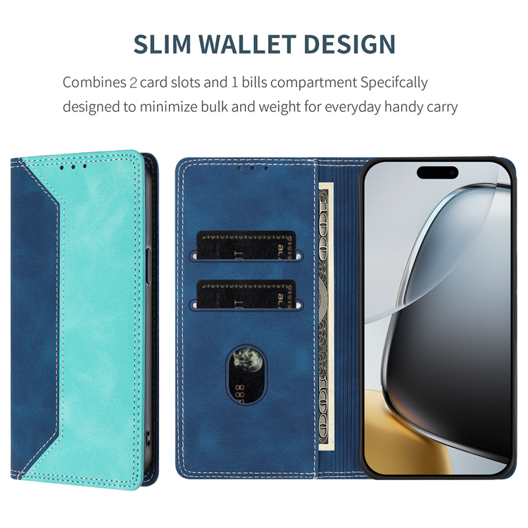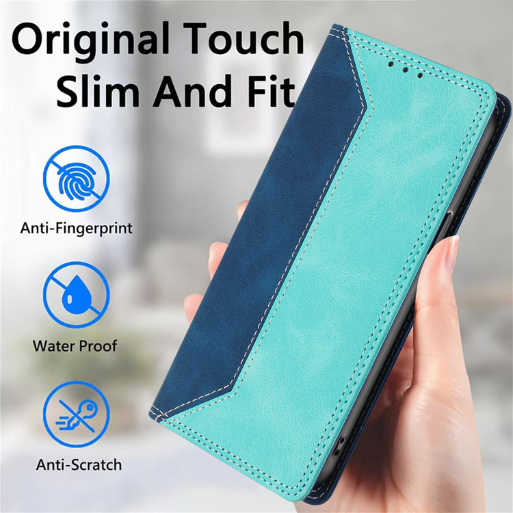 Ge din mobil både stil och funktion i ett enda genomtänkt mobilfodral. Den lyxiga kombinationen av PU-läder och TPU med en mjuk skin-touch-känsla gör att skalet ligger bekvämt i handen samtidigt som det ger ett pålitligt skydd i vardagen. Den trendiga färgblock-designen ger din mobil en modern och iögonfallande look som skiljer sig från mängden – perfekt för dig som vill ha ett skal som känns både praktiskt och snyggt.