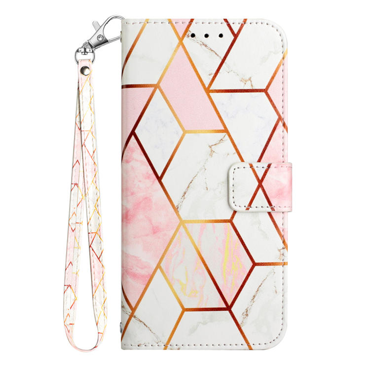 OnePlus 15 Plånboksfodral Marble Pattern Läder med Rem - Rosa/Vit