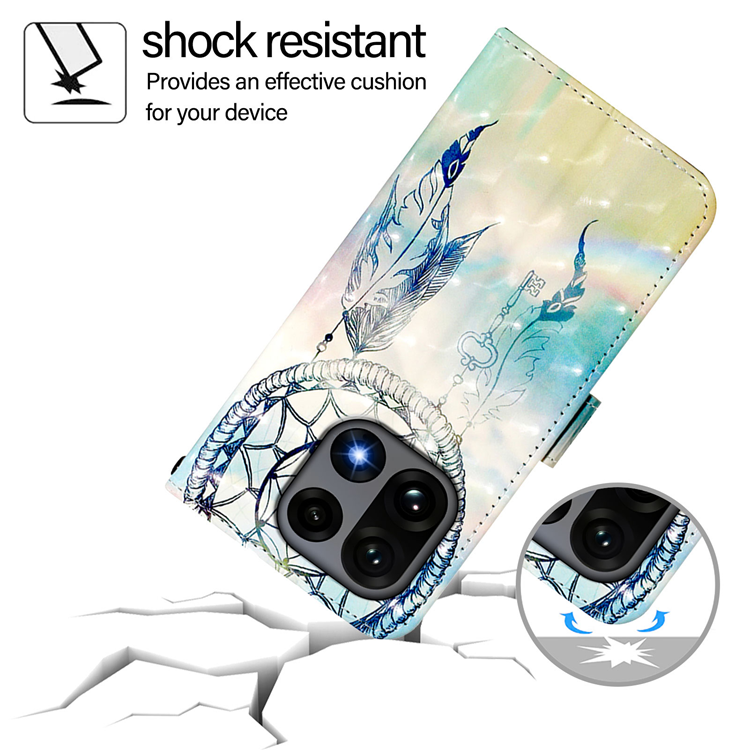 Tillverkat i slitstark TPU och mjukt, hudvänligt PU-läder ger fodralet både premiumkänsla och robust skydd mot vardagens slitage. Det stilfulla mönstret med ljuseffekter gör fodralet unikt och ögonfångande, perfekt för dig som vill sticka ut. Med tre kortfack och ett sedelfack håller du enkelt ordning på dina viktigaste tillhörigheter. Den vikbara framsidan fungerar som ett justerbart stativ för handsfree-visning, och den magnetiska stängningen håller allt säkert på plats. Det medföljande handledsbandet gör fodralet enkelt att bära med sig – tryggt och praktiskt.
