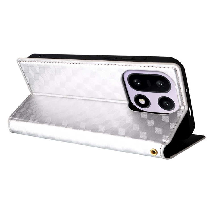 OnePlus 15 5G Plånboksfodral Rhombus Imprinted PU Läder - Silver