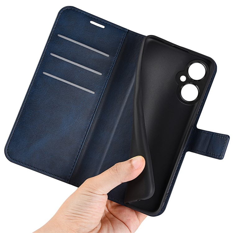 OnePlus Nord CE 3 Lite 5G Plånboksfodral Folio Flip Calf Texture Läder Square Magnetic Clasp Stativ - Blå