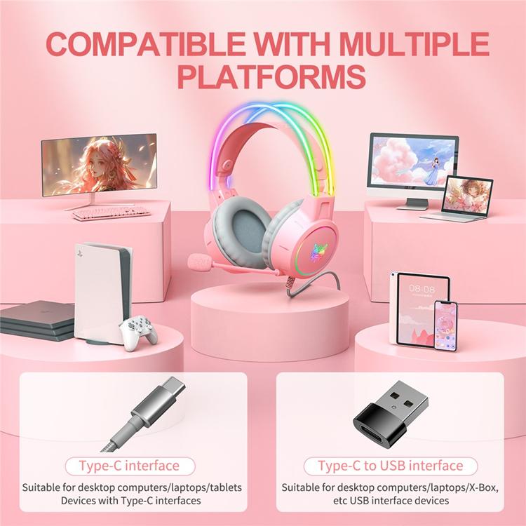 ONIKUMA Over-Ear Gaming Hörlurar Trådbundna 3.5mm med RGB-Ljuseffekt X15 Pro - Rosa