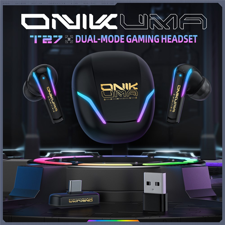 ONIKUMA TWS Trådlösa Bluetooth Hörlurar In-ear Vattentäta 2.4G Gaming Low Latency IPX4 T27 - Svart