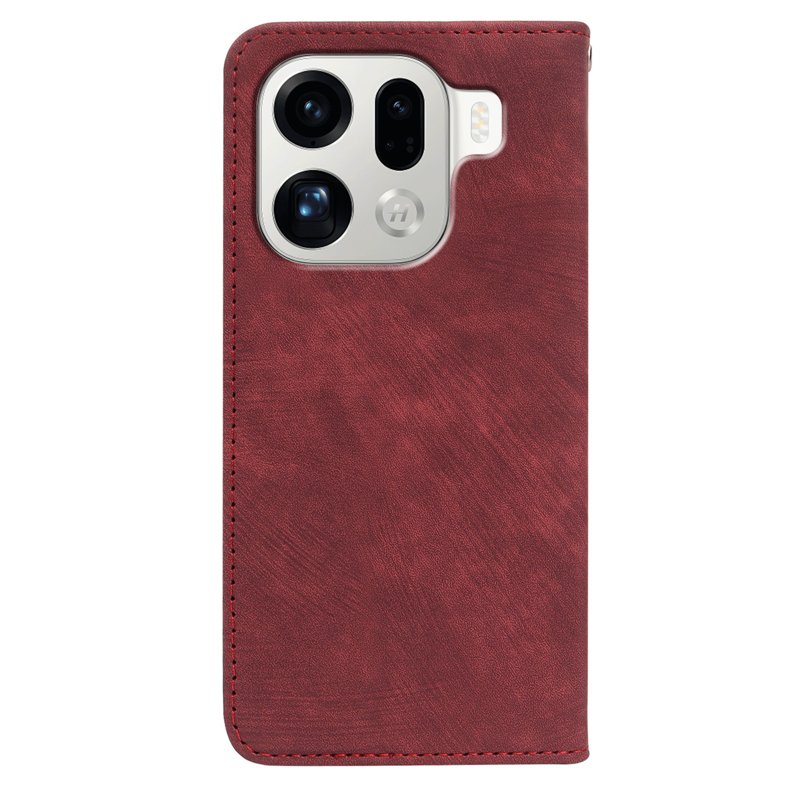 Oppo Find X9 Pro 5G Fodral Äkta Läder Magnetiskt - Röd