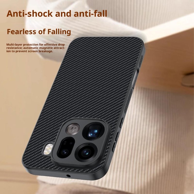 Skydda din Oppo Find X9 Pro 5G med detta eleganta och hållbara fodral i läder och hård PC. Med en kolfiberstruktur kombinerar det stil och funktionalitet. Fodralet erbjuder överlägsen skydd mot repor och stötar, vilket gör det till det perfekta valet för din smartphone.