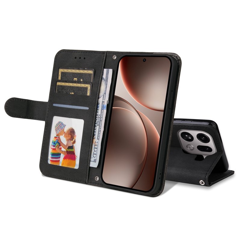 Oppo Find X9 Pro 5G läderplånboksfodral erbjuder både stil och funktionalitet. Detta fodral är tillverkat av slitstarkt PU-läder och har en TPU-inre skal. Med sin praktiska design kan du enkelt bära med dig kort och kontanter. Det är den perfekta lösningen för att skydda din telefon samtidigt som du har allt du behöver nära till hands.