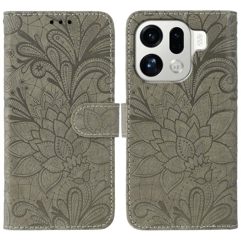 Skydda din Oppo Find X9 Pro 5G med det eleganta Lace Flowers PU Leather Flip Wallet Phone Cover i grått. Denna mobilfodral kombinerar stil och funktionalitet. Med ett vackert blommönster och smarta fack för kort och kontanter är det den perfekta lösningen för den moderna användaren.