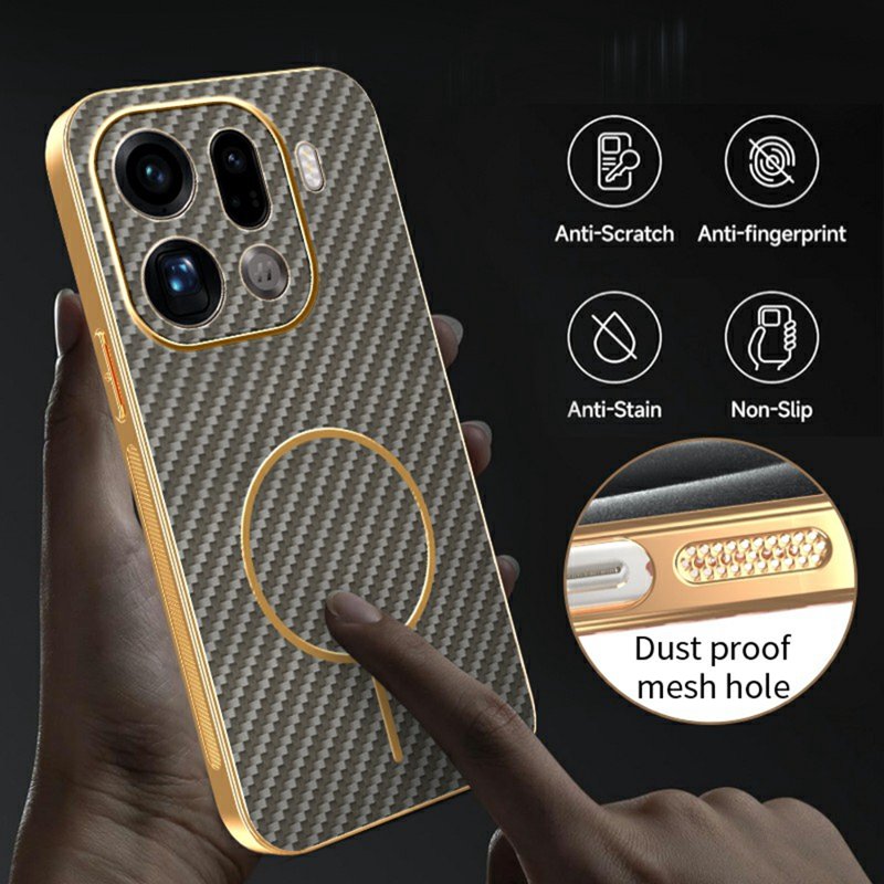 Skydda din Oppo Find X9 Pro 5G med detta eleganta och hållbara fodral i kolfibertextur. Fodralet är tillverkat av TPU-material som ger utmärkt stötabsorbering och en perfekt passform. Den elektropläterade ytan ger både hållbarhet och en stilren look. Håll din telefon säker och snygg med detta fodral.