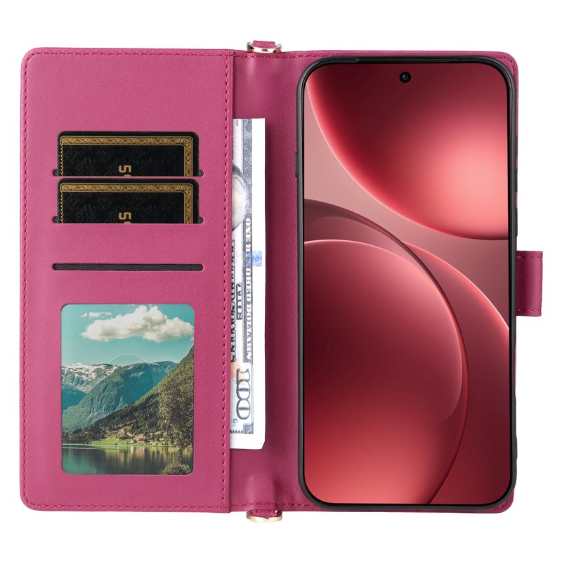 Oppo Find X9 Pro 5G läderfodral med stativ och axel-/handledsrem är den perfekta lösningen för att skydda din telefon. Detta eleganta fodral kombinerar högkvalitativt material med funktionalitet. Med flera kortfack och en justerbar stativfunktion är det både praktiskt och stiligt.