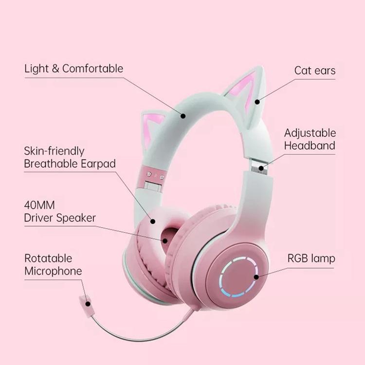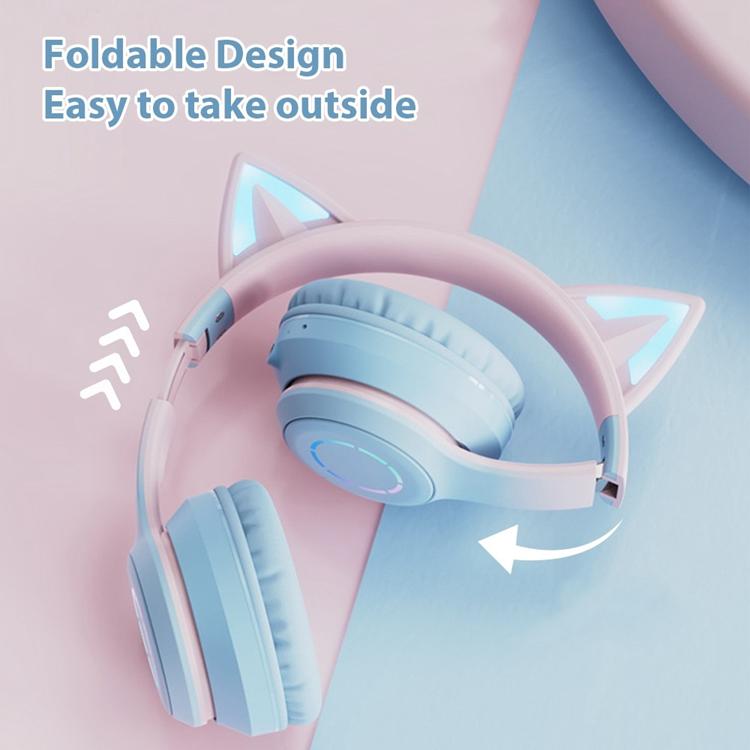Over-Ear Hörlurar för Barn med Avtagbar Mikrofon RGB LED Justerbara Huvudmonterade Stereo Musik Kattöra Fällbara Hörlurar BT029C - Rosa