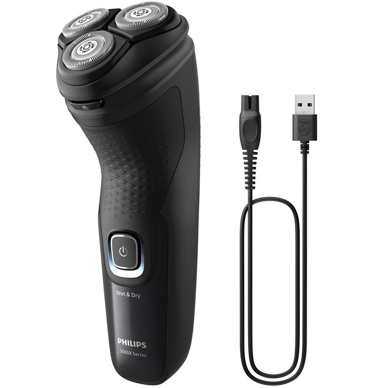 Philips rakapparat för våt- och torrakning i 3000X-serien ger dig en behaglig och nära rakning, och den är dessutom prisvärd. 27 självslipande PowerCut-blad, våt och torr användning samt en uppfällbar trimsax gör rakapparaten enkel att använda och är alltid tillförlitlig.