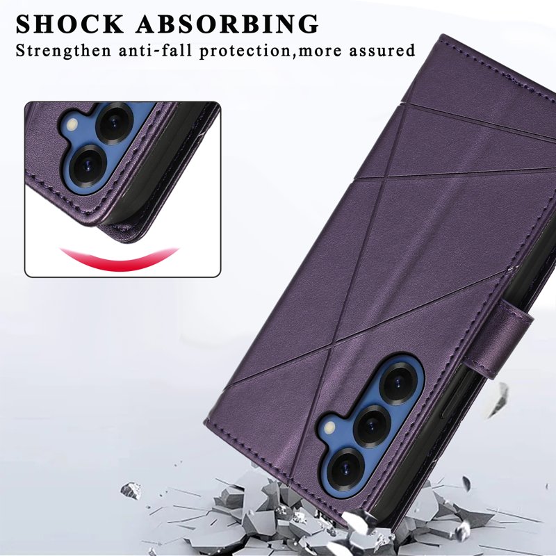 Skydda din Samsung Galaxy S26 med det eleganta Line Imprint Leather Wallet Cover. Denna telefonfodral kombinerar stil och funktionalitet. Med en praktisk handledsrem och smarta förvaringslösningar är det den perfekta följeslagaren för din smartphone. Njut av handsfree-visning och säker förvaring av dina kort och kontanter.