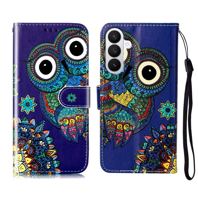Handla denna produkt Plånboksfodral för Samsung Galaxy S26 Konstläder med rem - Blå Uggla