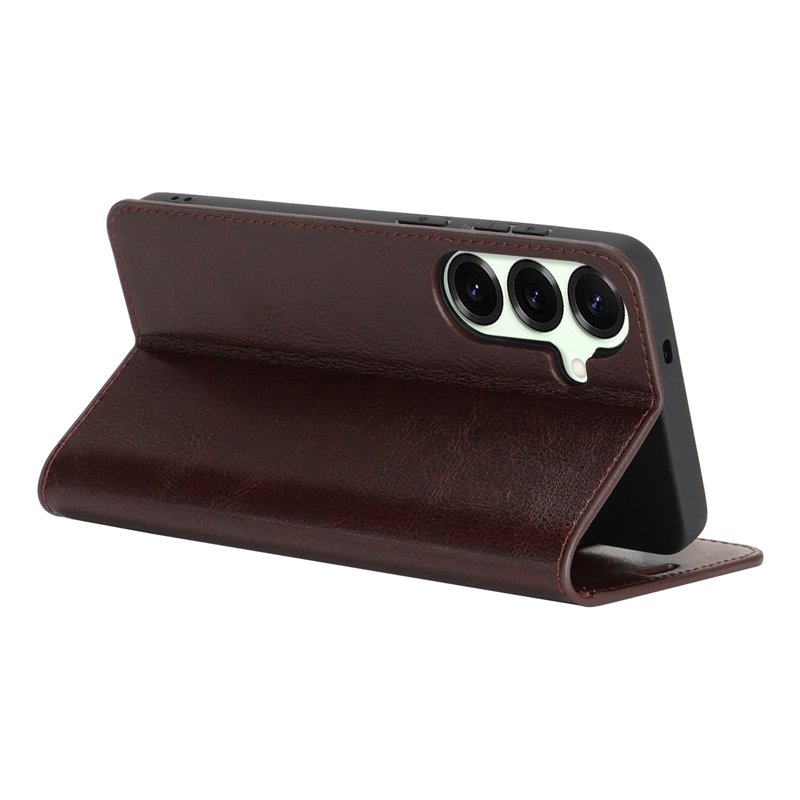 Skydda din Samsung Galaxy S26 med det stiliga Crazy Horse Texture Split Leather Wallet Phone Cover i mörkbrunt. Denna plånboksfodral kombinerar funktionalitet med elegans. Med smarta förvaringslösningar och en robust design är detta fodral perfekt för den moderna användaren.