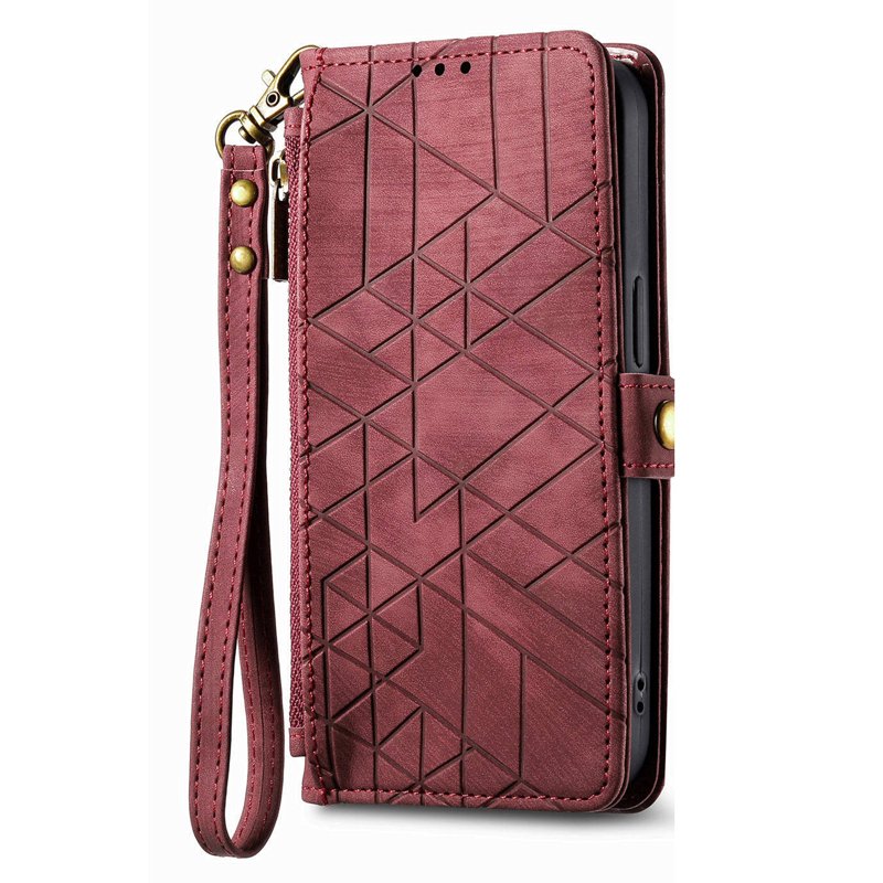 Skydda din Samsung Galaxy S26 med det stiliga Zipper Wallet Geometry Lines Leather Phone Cover. Denna plånboksfodral kombinerar funktionalitet och elegans. Med sin smarta design och praktiska funktioner är det den perfekta lösningen för att hålla dina värdesaker organiserade och säkra.