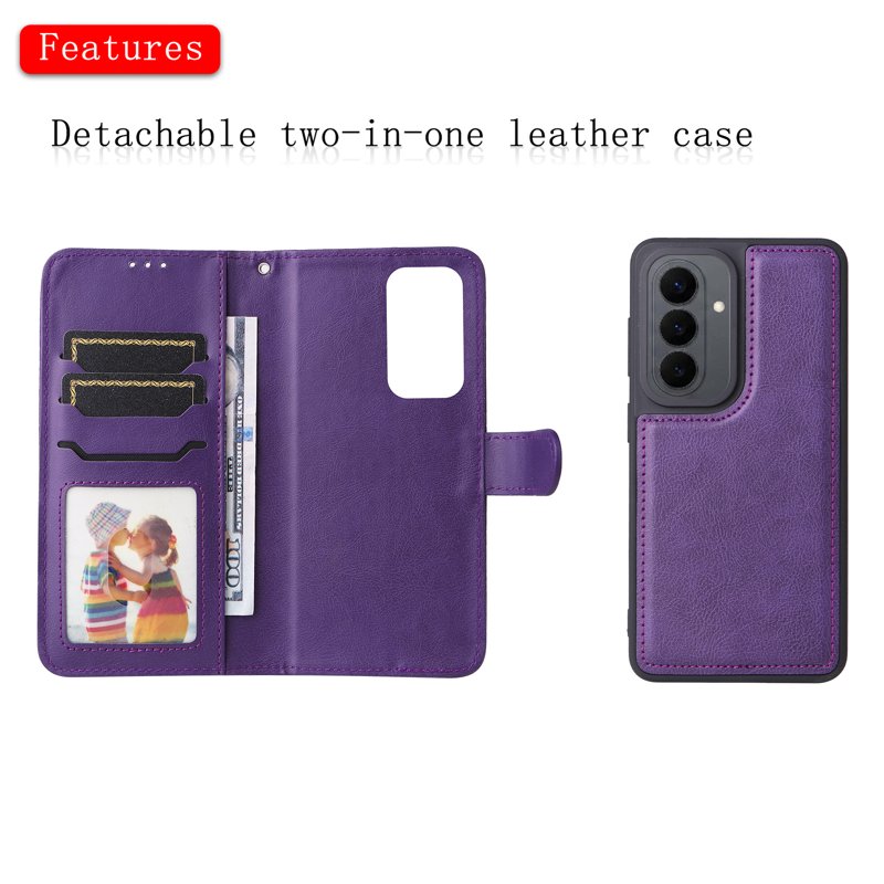 Skydda din Samsung Galaxy S26 med detta 2-i-1 avtagbara magnetiska läderplånboksfodral. Det eleganta lila fodralet kombinerar stil och funktionalitet. Med en praktisk plånboksdesign och en avtagbar inre TPU-del får du en lösning som håller dina tillhörigheter organiserade och lättillgängliga.