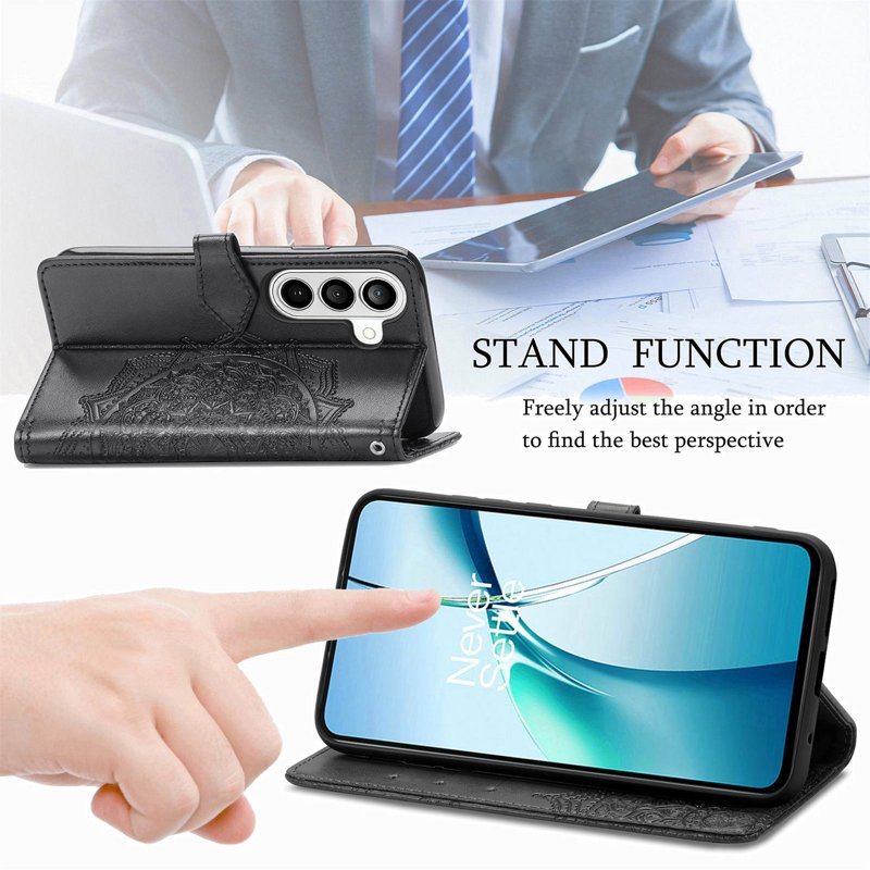 Skydda din Samsung Galaxy S26 med det eleganta Wallet Case Mandala Flower. Denna svarta läderfodral kombinerar stil och funktionalitet. Med praktiska kortfack och en ställfunktion är den perfekt för både vardag och speciella tillfällen. Njut av en säker och bekväm användning med detta premiumfodral.