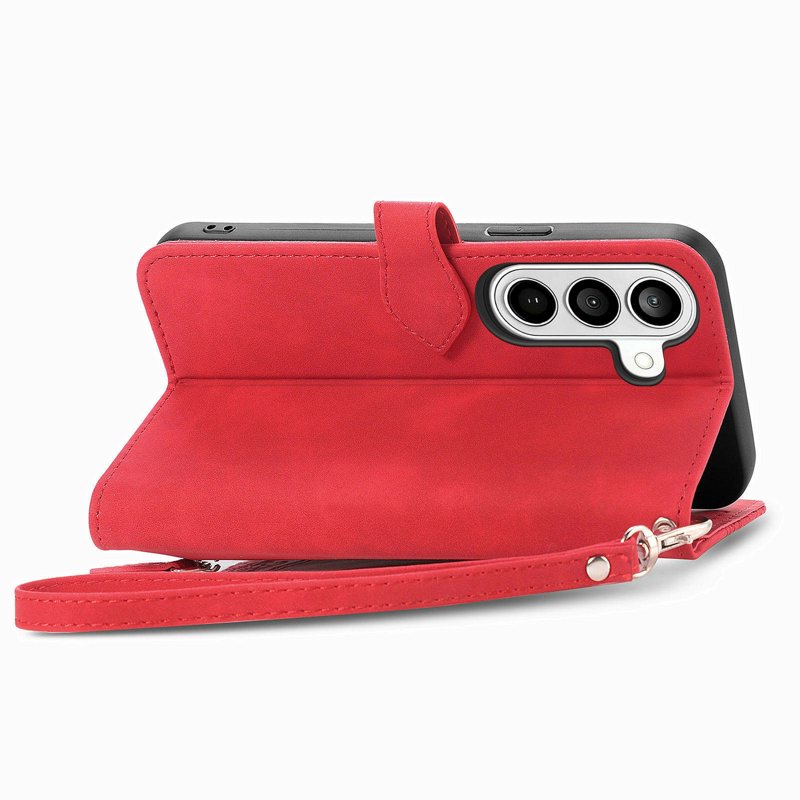 Upptäck Samsung Galaxy S26 Zipper Wallet Case med strap och blommönster i PU-läder. Denna plånboksfodral kombinerar stil och funktionalitet. Den är perfekt för den som vill ha en elegant lösning för att skydda sin telefon och samtidigt ha plats för kort och kontanter. Med detta fodral får du både säkerhet och bekvämlighet i ett och samma paket.