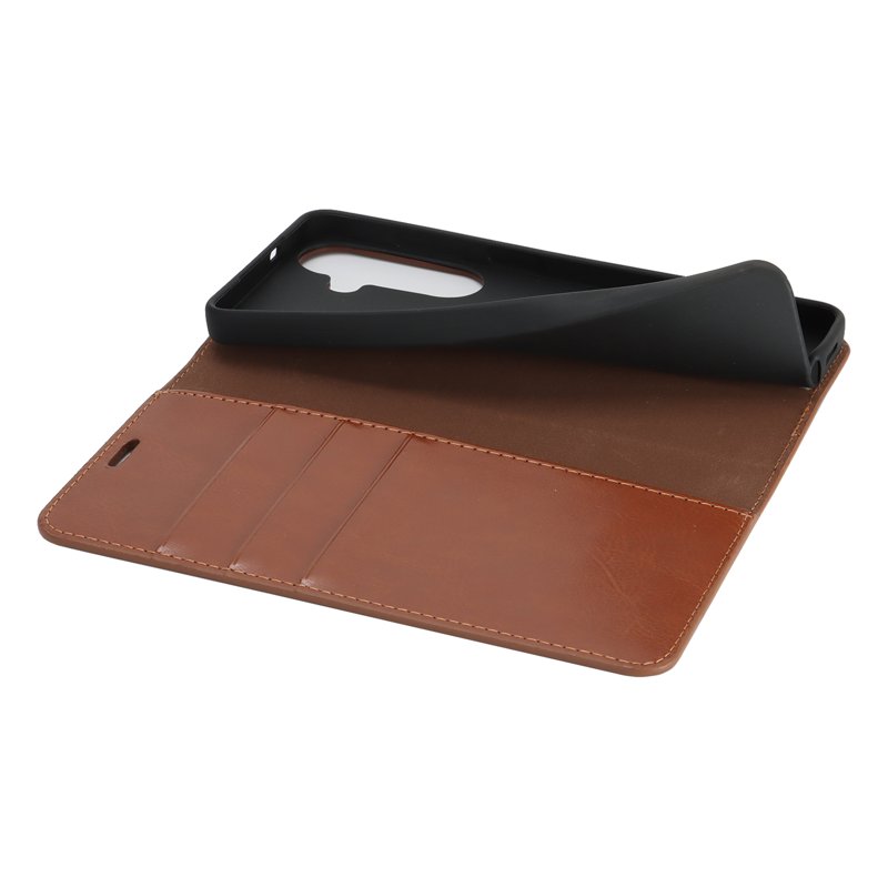 Plånboksfodral för Samsung Galaxy S26 Plus Äkta läder - Ljusbrun