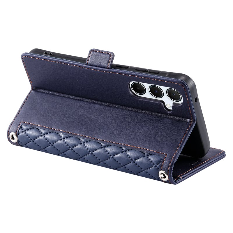 Skydda din Samsung Galaxy S26 Plus med detta eleganta läderfodral. Med en stilren rhombus-textur och praktiska funktioner är detta fodral både funktionellt och snyggt. Håll dina kort och kontanter organiserade samtidigt som du njuter av ett bekvämt grepp och full skydd. Perfekt för den moderna användaren som värdesätter stil och säkerhet.