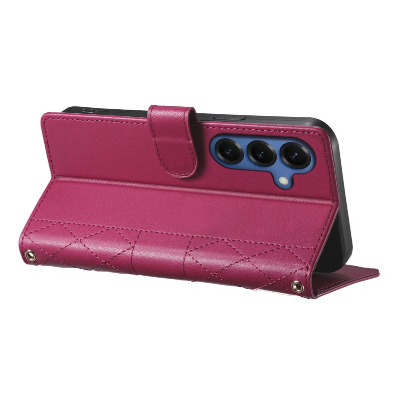 Skydda din Samsung Galaxy S26 Plus med detta stiliga och funktionella plånboksfodral. Det röda fodralet med rhombus-stygn kombinerar elegans med praktiska funktioner. Med flera kortfack och en inbyggd ställfunktion är detta fodral perfekt för den moderna användaren som vill ha allt samlat på ett ställe.