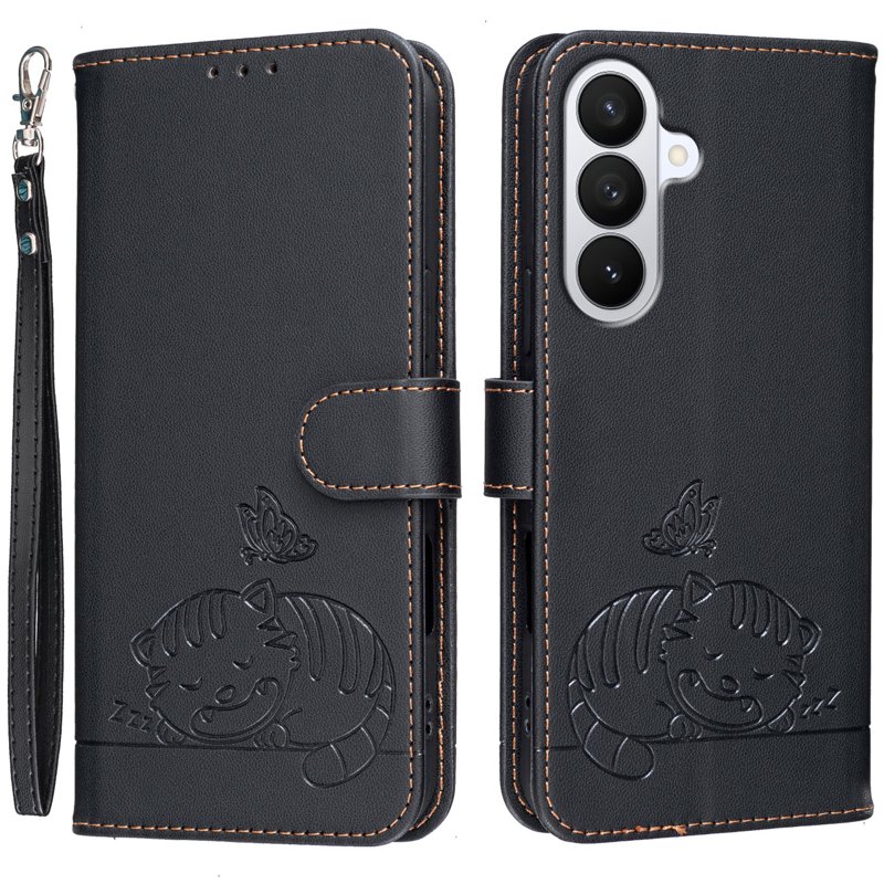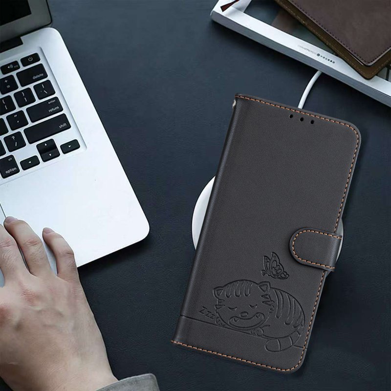 - Stilren skydd - Tillverkat av mjukt TPU och PU-läder med ett mönster av en söt sovande katt och fjäril, vilket ger ett komplett skydd och praktisk funktionalitet.