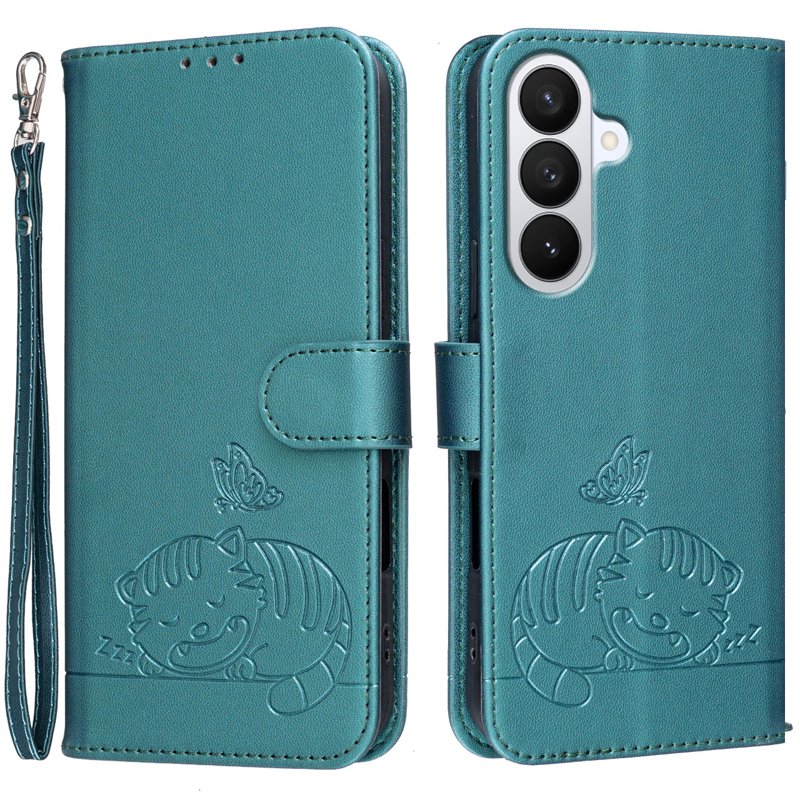 - Stiligt skydd – Fodralet är tillverkat av mjukt TPU och PU-läder med en tryckt design av en sovande katt och fjäril, vilket ger både skydd och stil.