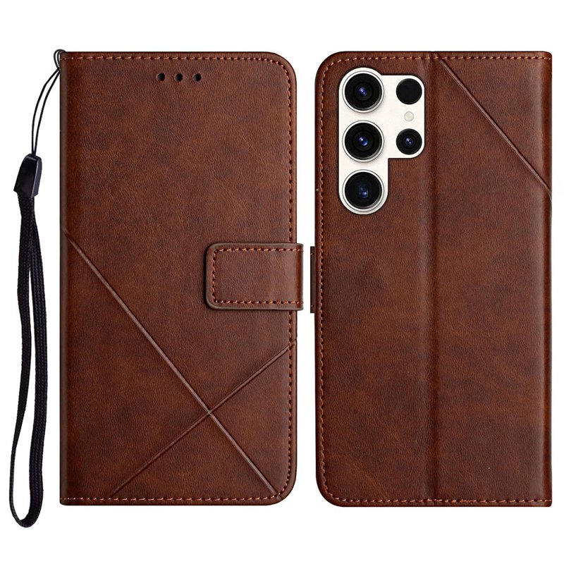 Skydda din Samsung Galaxy S26 Ultra med detta stiliga och funktionella Line Pattern Wallet Leather Phone Cover. Denna bruna plånboksfodral kombinerar elegans och praktiska funktioner. Med en integrerad handledsrem och ett stöd för handsfree-användning är detta fodral perfekt för den moderna livsstilen.
