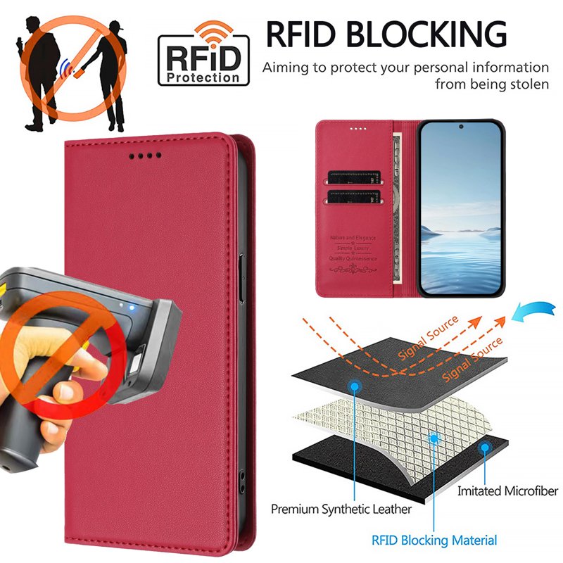 - RFID-blockering skyddar dina kort från obehörig avläsning och datastöld.