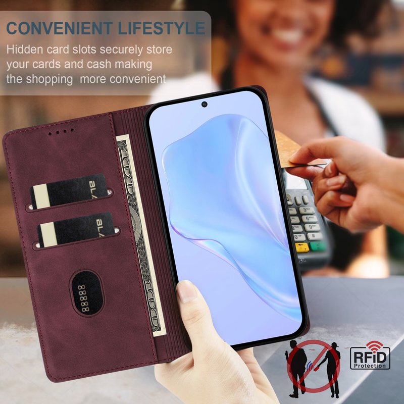 Skydda din Samsung Galaxy S26 Ultra med HX RFID Blocking Wallet Stand Leather Flip Phone Cover i vinröd. Denna eleganta och funktionella mobilskal erbjuder både stil och säkerhet. Med sina smarta funktioner gör den din vardag enklare och tryggare.