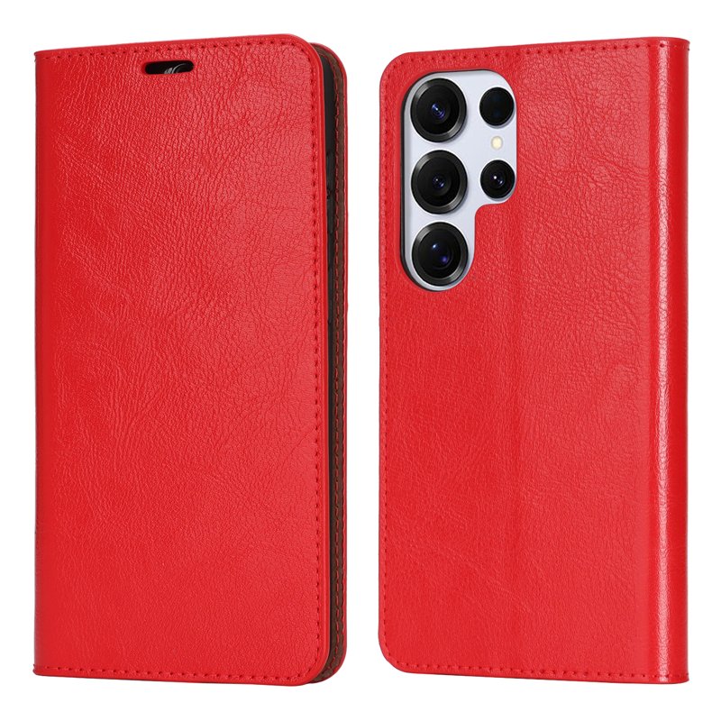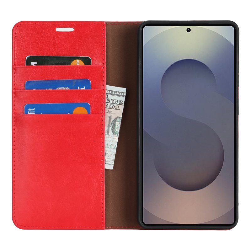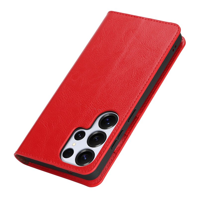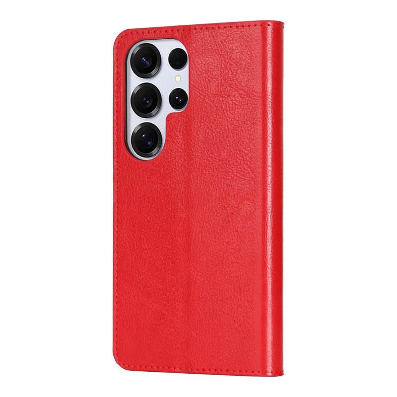 Skydda din Samsung Galaxy S26 Ultra med det stiliga Crazy Horse Texture Split Leather Wallet Phone Cover i röd färg. Denna plånboksfodral kombinerar elegans med funktionalitet. Med flera kortfack och en justerbar ställning är detta fodral perfekt för både arbete och fritid. Håll din telefon och dina värdesaker säkra och lättillgängliga.