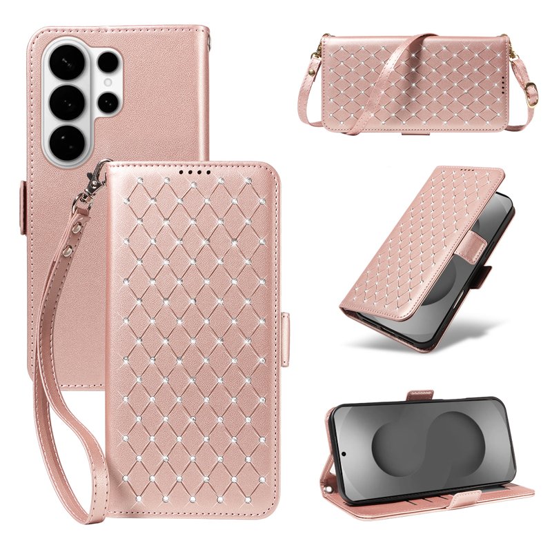 Skydda din Samsung Galaxy S26 Ultra med denna eleganta läderfodral i roséguld. Med en gnistrande rhombusdesign och praktiska funktioner erbjuder detta fodral både stil och säkerhet. Det är den perfekta lösningen för den moderna användaren som vill kombinera mode med funktionalitet.