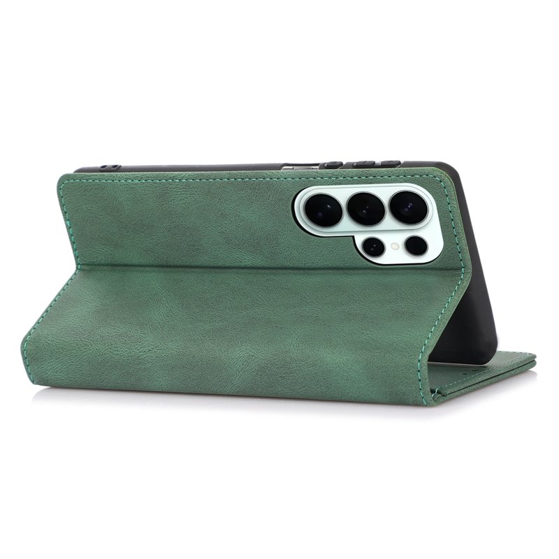 Skydda din Samsung Galaxy S26 Ultra med detta eleganta och funktionella Wallet Magnetic Closing Leather Flip Phone Cover. Denna gröna mobilskal kombinerar stil och säkerhet. Med flera kortfack och en praktisk ståfunktion är detta fodral perfekt för den moderna användaren som vill ha allt i ett.