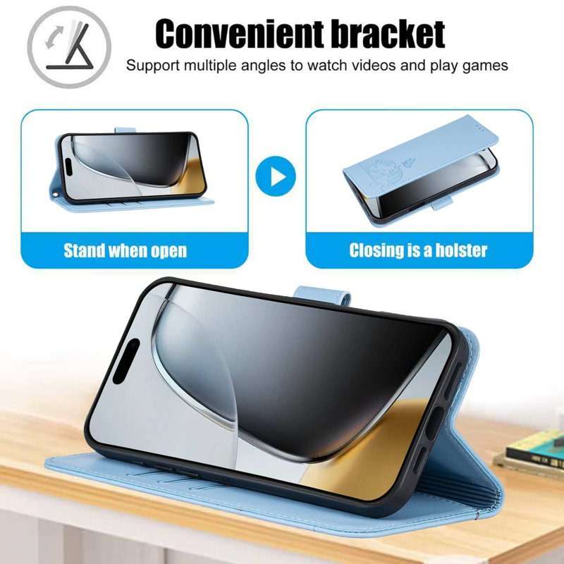 - Stiligt skydd – Tillverkat av mjukt TPU och PU-läder, med ett mönster av en söt sovande katt och fjäril för ett unikt utseende.