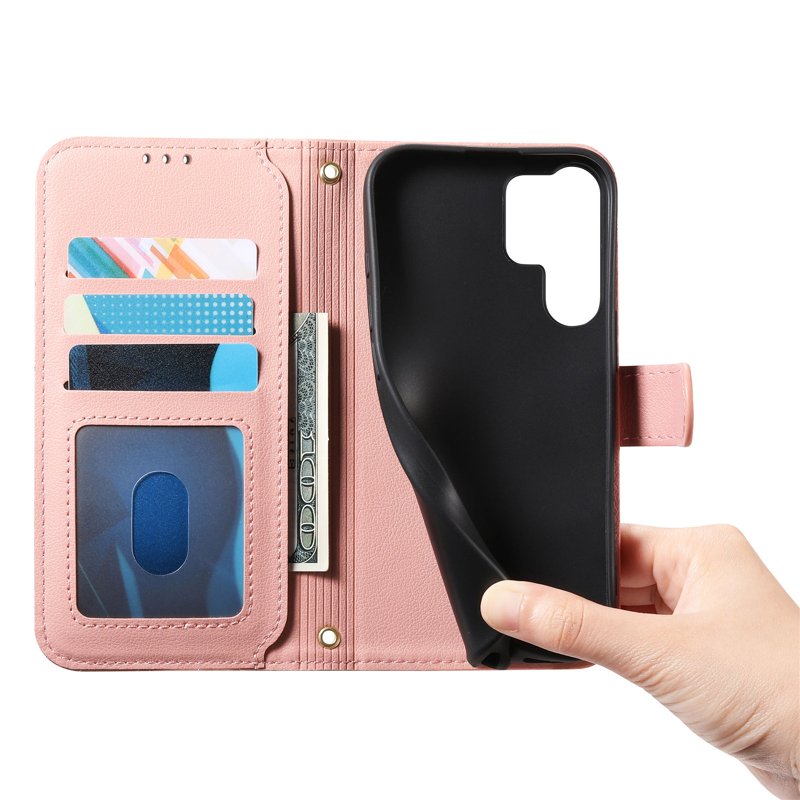 Skydda din Samsung Galaxy S26 Ultra med detta stiliga och funktionella Stand Case Imprint. Tillverkat av högkvalitativt PU-läder och TPU, erbjuder detta fodral både hållbarhet och elegans. Med en praktisk plånboksdesign och en bekväm ställfunktion är detta fodral perfekt för både arbete och fritid.