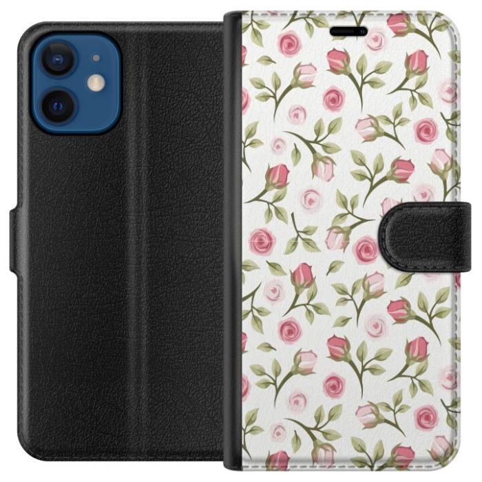 Plånboksfodral för iPhone 12 mini med Blommigt -design. Fodralet kombinerar stil och funktion – ett slitstarkt mobilskal som skyddar mot repor och stötar samt praktiska kortfack på insidan.
