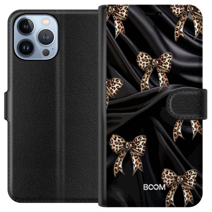 Plånboksfodral för iPhone 13 Pro Max med Leopard Bow -design. Fodralet kombinerar stil och funktion – ett slitstarkt mobilskal som skyddar mot repor och stötar samt praktiska kortfack på insidan.