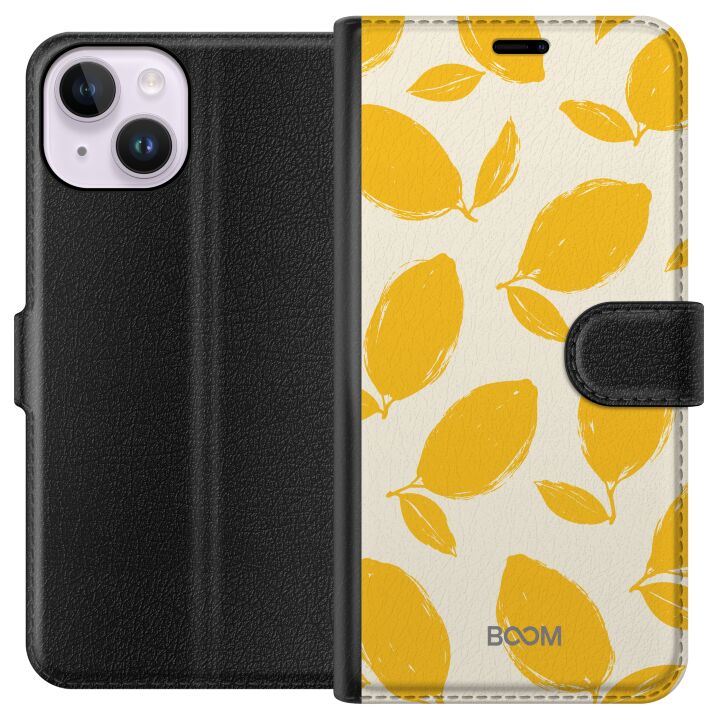 Plånboksfodral för iPhone 15 med Lemon Breeze -design. Fodralet kombinerar stil och funktion – ett slitstarkt mobilskal som skyddar mot repor och stötar samt praktiska kortfack på insidan.