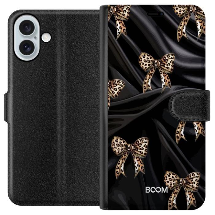 Plånboksfodral för iPhone 16 Plus med Leopard Bow -design. Fodralet kombinerar stil och funktion – ett slitstarkt mobilskal som skyddar mot repor och stötar samt praktiska kortfack på insidan.