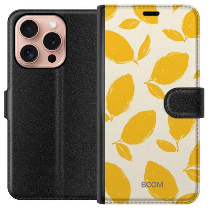 Plånboksfodral för iPhone 16 Pro med Lemon Breeze -design. Fodralet kombinerar stil och funktion – ett slitstarkt mobilskal som skyddar mot repor och stötar samt praktiska kortfack på insidan.