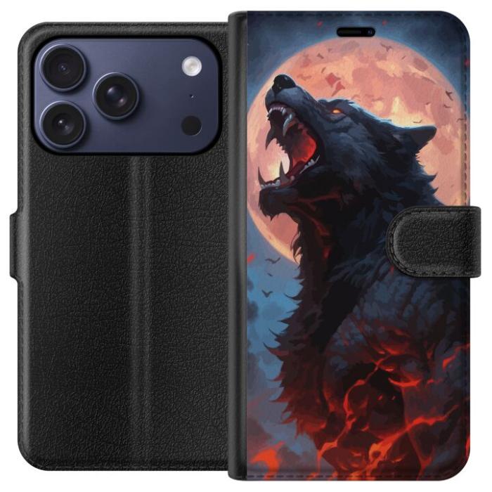 Plånboksfodral för iPhone 17 Pro med Ylande varg -design. Fodralet kombinerar stil och funktion – ett slitstarkt mobilskal som skyddar mot repor och stötar samt praktiska kortfack på insidan.