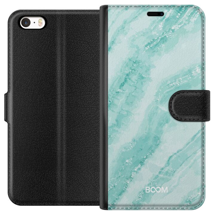 Plånboksfodral för iPhone 5 med Mint Marble -design. Fodralet kombinerar stil och funktion – ett slitstarkt mobilskal som skyddar mot repor och stötar samt praktiska kortfack på insidan.
