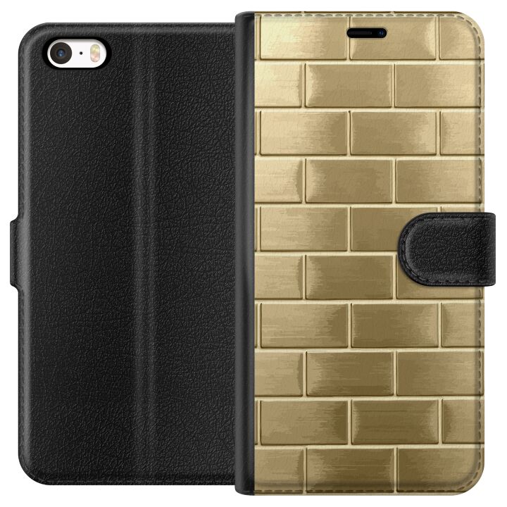 Plånboksfodral för iPhone 5s med Gyllene Murstenar -design. Fodralet kombinerar stil och funktion – ett slitstarkt mobilskal som skyddar mot repor och stötar samt praktiska kortfack på insidan.