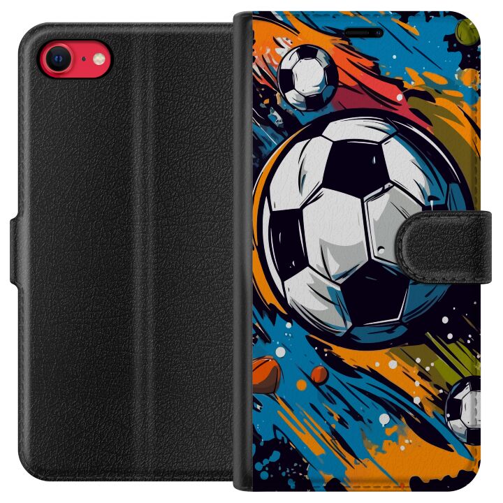 Plånboksfodral för iPhone 7 med Fotbollar -design. Fodralet kombinerar stil och funktion – ett slitstarkt mobilskal som skyddar mot repor och stötar samt praktiska kortfack på insidan.