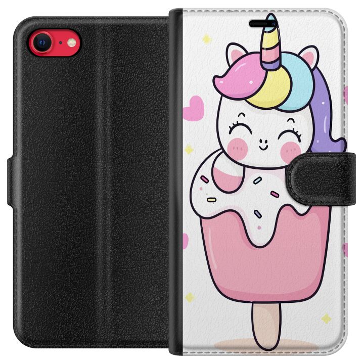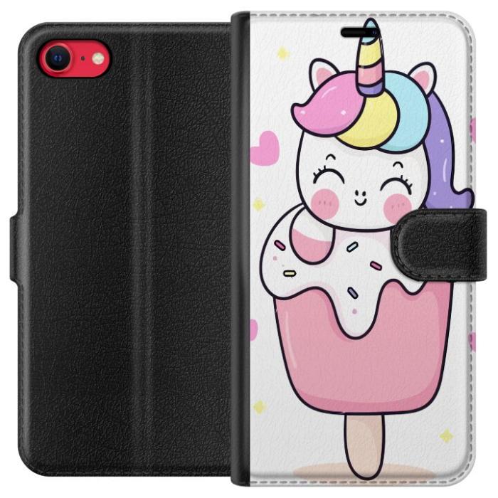 Plånboksfodral för iPhone 8 med Glad enhörning -design. Fodralet kombinerar stil och funktion – ett slitstarkt mobilskal som skyddar mot repor och stötar samt praktiska kortfack på insidan.