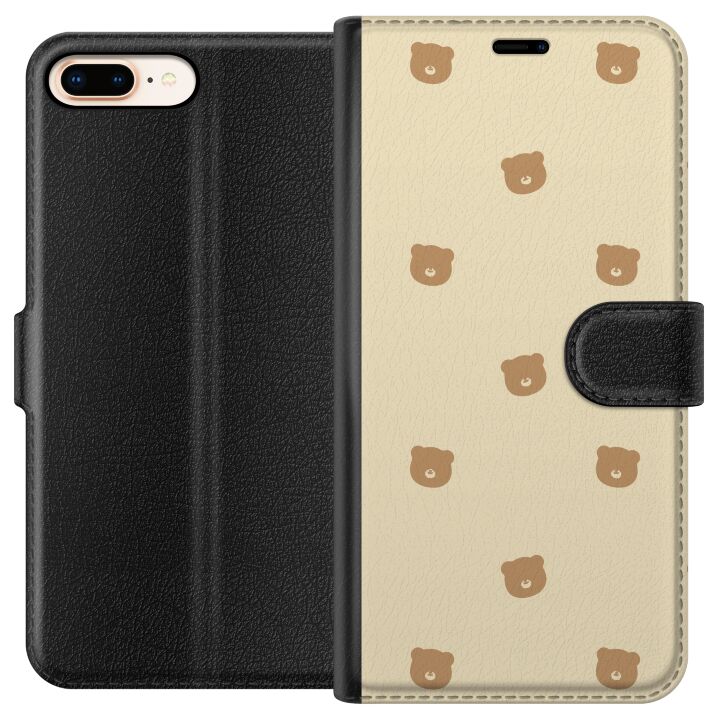 Plånboksfodral för iPhone 8 Plus med Björnmönster -design. Fodralet kombinerar stil och funktion – ett slitstarkt mobilskal som skyddar mot repor och stötar samt praktiska kortfack på insidan.