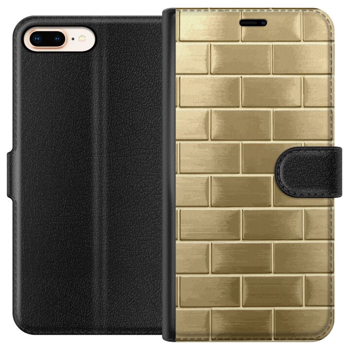 Plånboksfodral för iPhone 8 Plus med Gyllene Murstenar -design. Fodralet kombinerar stil och funktion – ett slitstarkt mobilskal som skyddar mot repor och stötar samt praktiska kortfack på insidan.