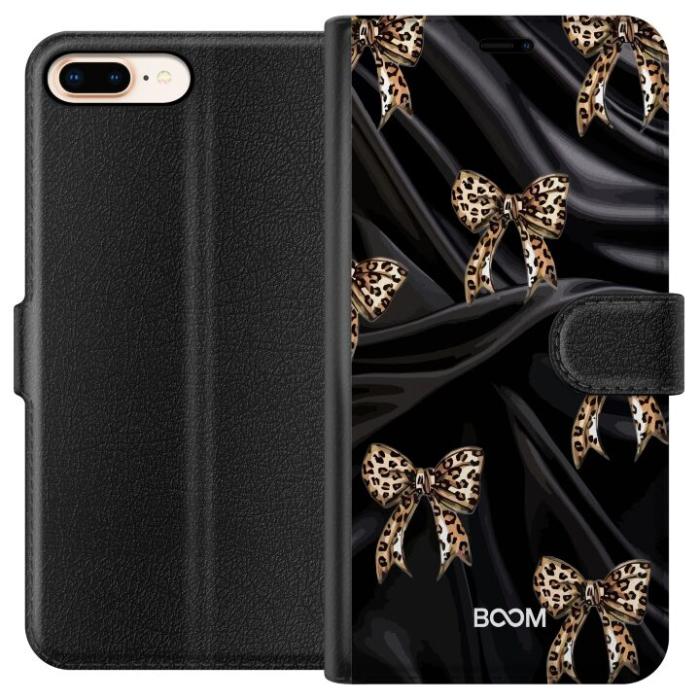 Plånboksfodral för iPhone 8 Plus med Leopard Bow -design. Fodralet kombinerar stil och funktion – ett slitstarkt mobilskal som skyddar mot repor och stötar samt praktiska kortfack på insidan.
